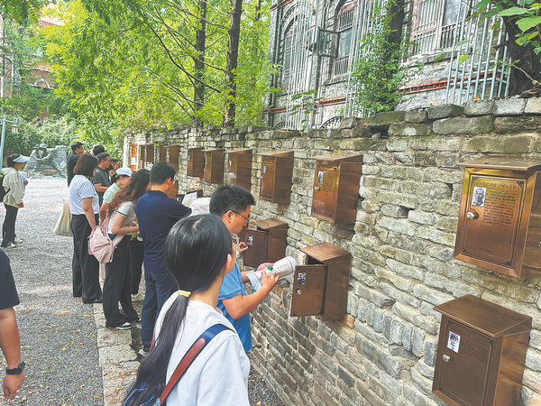 At Taierzhuang War Ruins Park, dozens of mailboxes on a wall contain copied letters written by soldiers to their families — some of whom had fought in the Battle of Taierzhuang. [Photo by Zhao Ruixue/China Daily]